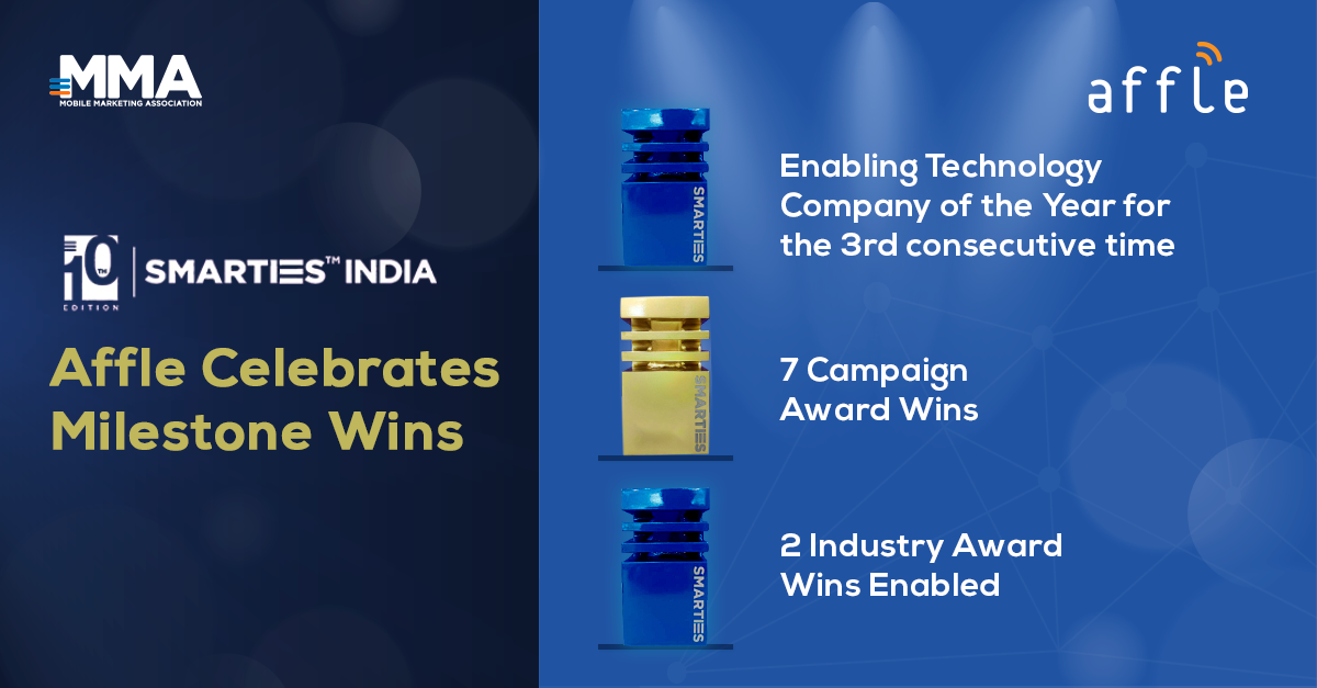 Affle completes a hat trick by winning ‘Technology Company of the Year’ at MMA Smarties for 3rd consecutive time, together with 7 other top Awards & Industry Recognitions